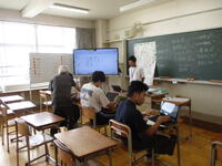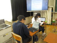 スキー移動教室に向けて現地の調べ学習を行いました。タブレット端末を活用し、調べた内容をスライドにまとめました。