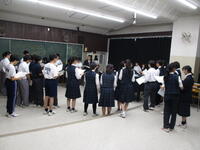 校外学習に関する質問が先生や実行委員からあり、班員が答えました。