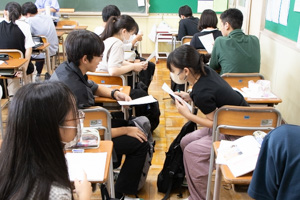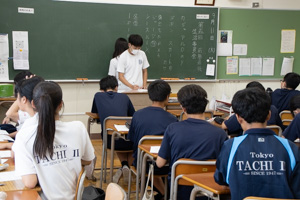 教職を目指している明星大学の学生のみなさんと生徒会本部役員の生徒で交流を行いました。