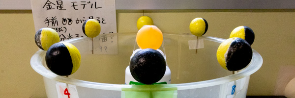 そのような中ですが、1組の授業では理科の天体の学習で、望遠鏡を使って太陽の黒点を観察していました。