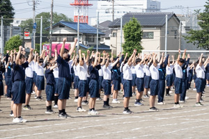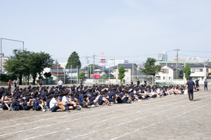 立川消防署の方にご協力をいただき、1学年の生徒が防災訓練に取り組みました。
