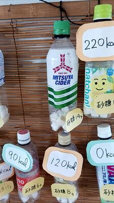 先日、病院に行った時に「飲み物の中に含まれている砂糖」についての掲示がありました。実際のペットボトルの中に角砂糖がどれくらい入っているかを示していました。はっきりと分かる掲示の仕方に感心しました。あらためて健康に留意しなくてはと思いました。