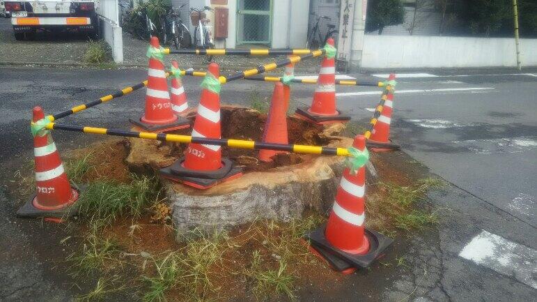 9月16日に掲載した高松町の大ケヤキが、伐採されました。枯木と判定されてのことですが、しっかり根が大地に根付いています。戦争時も耐え抜いてきた、歴史を見てきた木とお話ができたらと思ってしまいます。近くにはまだ大木があるので、見守ってほしい気持ちで通り過ぎました。