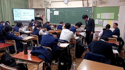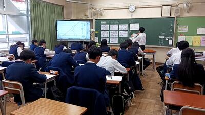 大勢の数学科の専門の先生がいる中で授業を行うのは緊張すると思います。その中を堂々と授業を行う本校の先生は、素晴らしく、誇りですね。