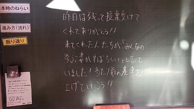 数学科では2年4組の生徒が対象でした。担任からのメッセージが朝の黒板に書いてありました。