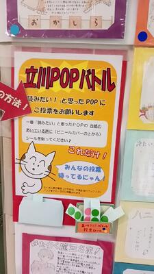 たちかわ読書ウィークが10月27日から始まっています。明日までの開催です。中央図書館では立川POP バトル2024が開催されています。本校の生徒のPOP があるかもしれないので見にいきたいと思います。