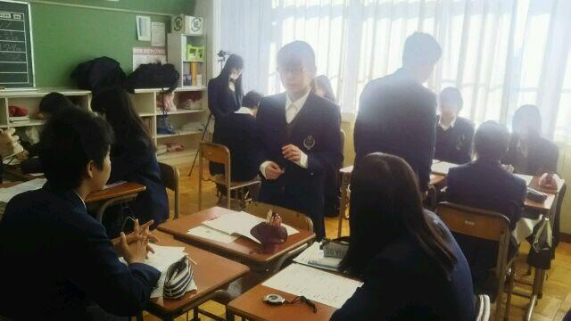隣の教室では、拍手が聞こえるので見てみると、こちらも英語の授業で一人一人が皆の前に出て「スピーチ」をしています。原稿を見ずに、ジェスチャーを交え、視線も皆に向けて堂々と英語で表現できているのには感心しました。