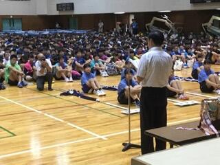 ▼にぎやかな声がこだましました。放送朝礼で始まった月曜日