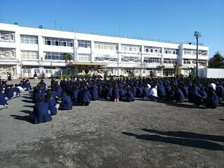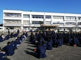 ▼好天のもと、校庭で始業式が行われました。