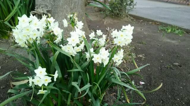 ○校門の傍らにひっそりと咲く水仙の花は日々生徒の姿を見ています