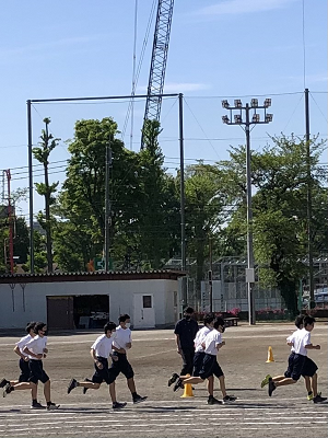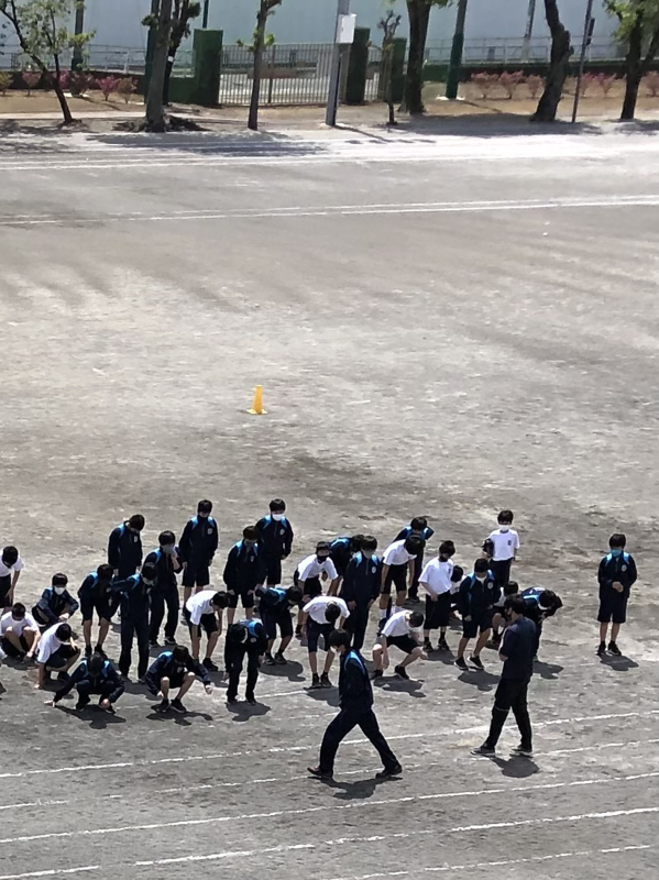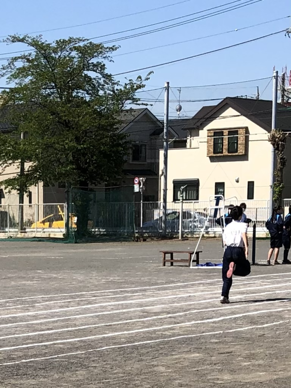 ■校庭の二中生の勇姿をカメラにおさめると、キリンのようなクレー