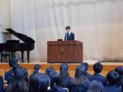 12月8日(月)の朝に、生徒朝礼を行いました。その中で生徒会から、寒くなってきたこの頃の服装の確認や体調管理について話がありました。また、階段踊り場の流しの上に時計が設置してありますがなぜそこにあるのか?の話がありました。それは昨年の先生と生徒会役員(生徒)の意見交換会でノーチャイム制を話し合ったときに、時間がわからなくて授業に遅れないよう付けられたのだそう(トイレに行っていて遅刻しないように)。生徒のみなさんの要望をかなえるために取り付けられた時計。あそこにある時計はあまり意識しなかったかもしれませんが、そんな意味のあるものだったんですね。これを機会に時間を守る大切さ、三中の特徴でもあるノーチャイムを、改めて意識してほしいと思います。デジタル投書箱も始まるそうです。みんなでよりよい三中、過ごしやすい三中を目指しましょう!