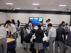 11月25日(火)の授業のようすです。1年生の美術では、レタリングを勉強していました。先生が電子黒板に書き方を実際に撮してくれるので、わかりやすかったです。2年生では英語の授業でALTの先生が授業を行っていました。3年生の国語では、「合意形成に向けて話し合おう」という授業で、班でテーマをもとに話し合う中で、複数の意見の共通点を見出して、多様な考え方を認め合いながら、合意形成に向かって話し合っていました。かなり難しい話し合いです。でもさすが3年生。司会者を中心によく頑張っていました。入試の面接や就職の集団面接でも活かされそうです。民主主義のキホンですね!