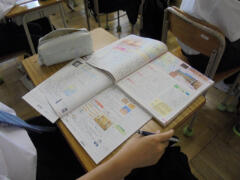11月26日(水)の授業のようすです。1年生の家庭科では、エコバックを制作していました。ミシンの操作に悪戦苦闘していました。私はてっきりエプロン作りだと思って生徒に声をかけたら「エコバックです」と正されてしまいました。ごめんなさい、よく見たら確かにエコバックでした…。でもその生徒はそのあと、エプロンのように首からエコバックを掛けていたのでした。