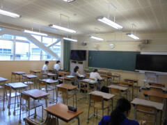 12月16日(火)の6校時後に、不審者対応の避難訓練を行いました。放送による合図ののち、各授業クラスで教室ドアの内側にバリケードを作りました。不審者役の3人の教員がドアが開くか試みました(前回はバリケード作成まで)が、いくつかのクラスはドアが開いてしまいました…。次回までに反省を活かしたいと思います。