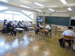 10月3日(金)の放課後に、専門委員会が行われていました。来週に生徒総会が行われるため、各クラスで各委員会の活動方針等がもまれ、そこから出てきた質問や意見等に対して、回答を考えます。各委員会とも、一生懸命に検討していました。また、その後には、希望者による英語検定が行われていました。健闘を祈ります!