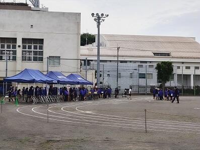 直前まで台風1号接近の影響で雨が降り、当日の天気と校庭の状態が心配されましたが、