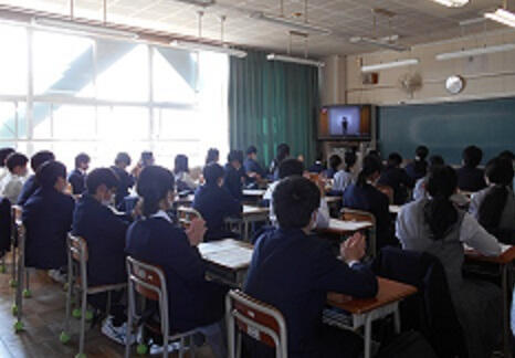 放送室からのテレビ配信のため、1年生は教室から歓迎会に参加しました。