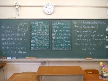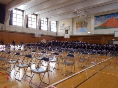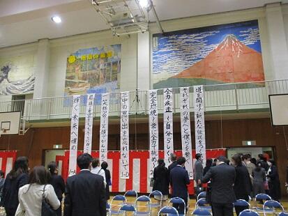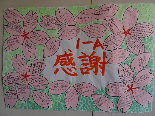 3年生に見てもらえるように、3年生の教室前の廊下に掲示されていましたが、明日の卒業式に備え、掲示場所を体育館の保護者受付近くに移しました。