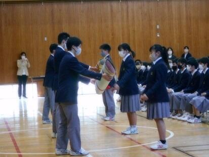 1,2年生から3年生へ、感謝やはなむけのメッセージが送られました。