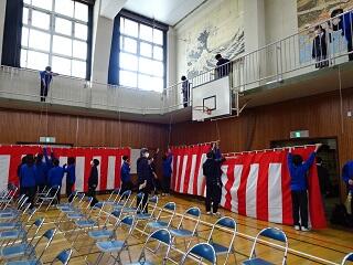会場設営や校内の美化など、3年生への「卒業おめでとう!」の思いを込めて、みんなで丁寧に作業を行いました。