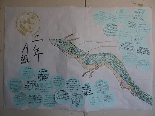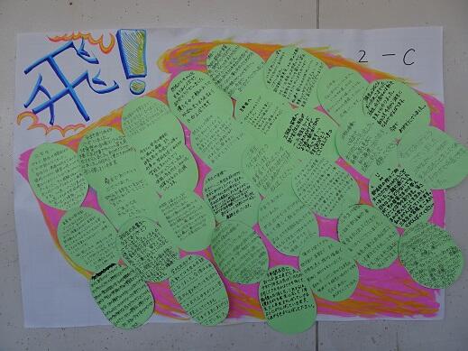 1,2年生の各クラスからのメッセージを書いた垂れ幕