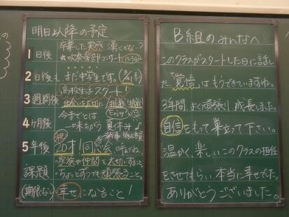 3月16日(木)卒業式前日の3年生の学活の様子です。