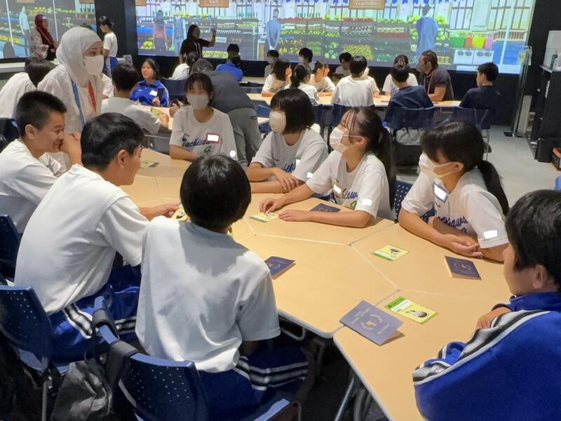生徒たちは班に分かれ、小学校で身につけた知識や日常生活の中で得た気づきを生かしながら、マインドマップを使って情報を整理しました。