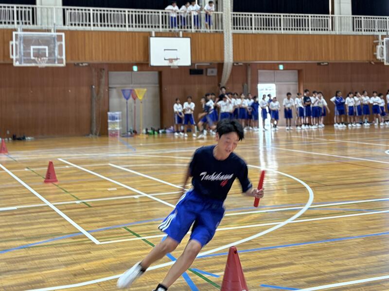◯ 1・2時間目は、3年生を対象に行いました。さすがの3年生、鬼より早くタッチしている生徒が多くいました。