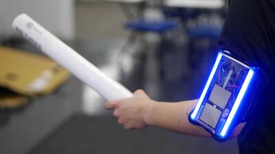 ・手裏剣から発射されるレーザーが敵のセンサー(おでこに装着)に当たれば得点が入ります。