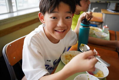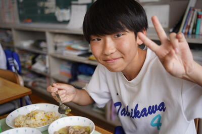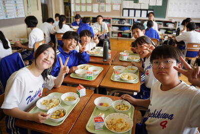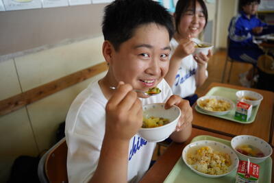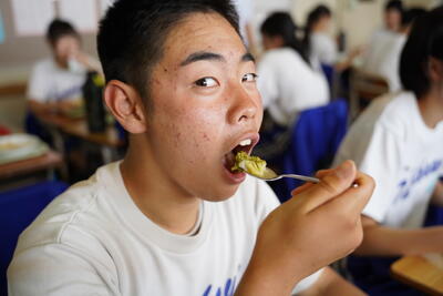早速実食です。焼きたてなのでアッツアツです。もともと美味しい餃子ですが、学校でみんなで食べることや自分たちで作ったという特別感からさらに美味しく感じます。