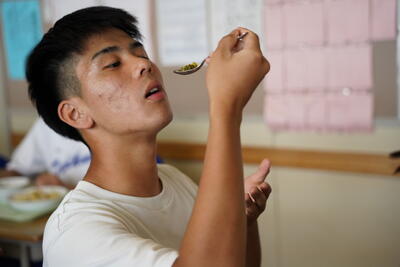 自分たちで巻いた餃子を先生に味見してもらいました。巻いた餃子にはそれぞれの個性も出ていました。どのグループの餃子も美味しいです。