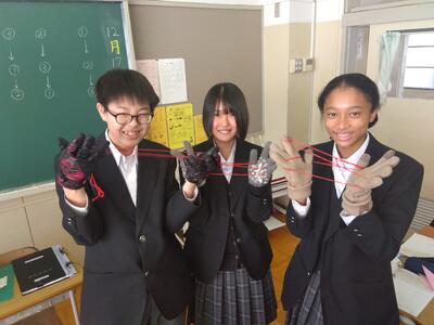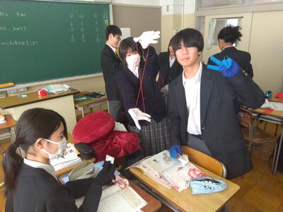 今日、3年生の家庭科の授業では、高齢者の疑似体験を行っていました。