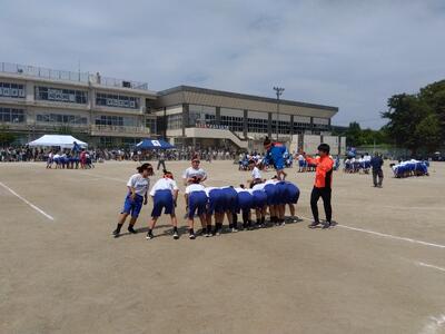 誕生日順に並ぶゲーム、フラフープを使ったゲーム、風船を使うゲームなどをチーム対抗戦で行い、小・中学校間の交流を深めました。四中、幸小、柏小の教職員どおしが、気軽に話しをできるような「顔や名前がわかる関係」であることが大切だと思います。