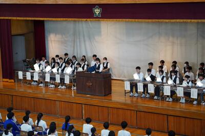 講師の方からの授業が終わったあとに、突然の第2ラウンドです。とっさの無茶振りにも答えて学びを実践できる四中生はさすがです。今後も生きた学びをたくさんしていきましょう。