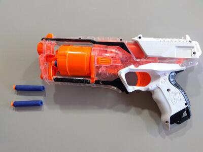 使用する「かっこいい銃」は副校長の私物です。正確には副校長の息子さんの大切なおもちゃです。今回もお借りします。
