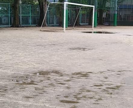 なお、校庭は一晩降り続いた雨の影響で、一部ドロドロになっていました。