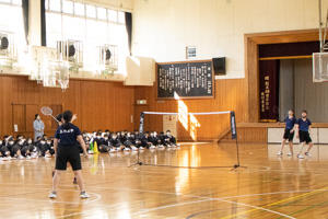 各部活動の活動日や活動内容の紹介とあわせて,練習の様子などは先輩が実演して紹介しました。今日の説明を参考に,これから始まる仮入部期間で興味のある部活動を実際に体験し,3年間続けようと思う部活動を見付けてもらえたらと思います。