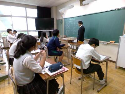 生徒の取り組みの様子を細かく見取り、「『成』の縦長の1画をしっかり長く書くのがポイント」と全体にアドバイスしていたました。