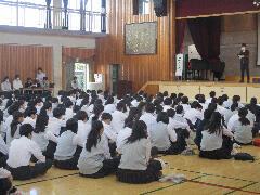 6校時、集会室でハローワークの方を講師に招き、職業講話を行いました。