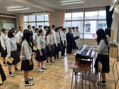 来週月曜日の1校時は、各クラスで自由曲選びを行います。