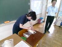 学校内外の先生数名が見守る中、事前に作成した学習指導案の流れに沿って、生徒とやりとりしながら授業を進めていきました。