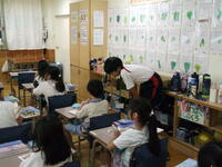 立川市空手道連盟の方々を講師に招き、今週から1,2年生で空手の授業がスタート。