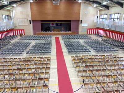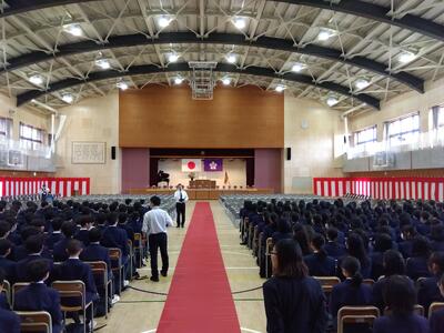 入学式の会場は、前方が「新入生の席」、中央が「保護者席」、後方が「在校生の席」となっています。