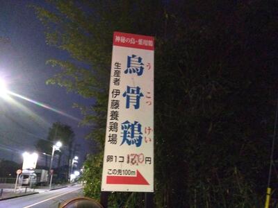 ところで、通勤途中にある烏骨鶏(うこっけい)の大きな看板が気になります。