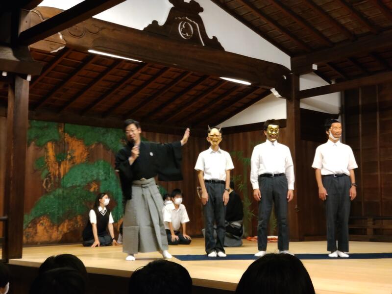 修学旅行2日目は班別行動で京都市内を見学しました。各班、事前に計画したコースを公共交通機関を駆使しながら、行動することができました。夕食の後には大江能楽堂にて能の鑑賞や体験をしました。