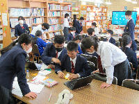 今日は定例の専門委員会がありました。図書委員会は12月11日から22日に行うクリスマスイベントの準備をしていました。図書室にある本やクロームブックで調べながら折り紙でクリスマス飾りを作っていました。