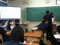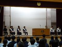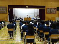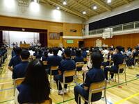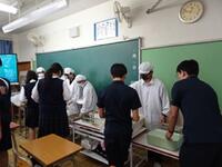 地震発生を告げる放送が入ると、どのクラスも一斉に避難行動(机の下に入り身を守る)をとり、揺れが収まって次の指示が出るのを静かに待っていました。