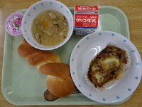 8日(月)は、しょうゆラーメン、手作りジャンボ焼売、ミックスゼリー、牛乳というメニューでした。