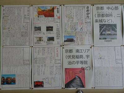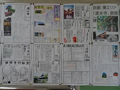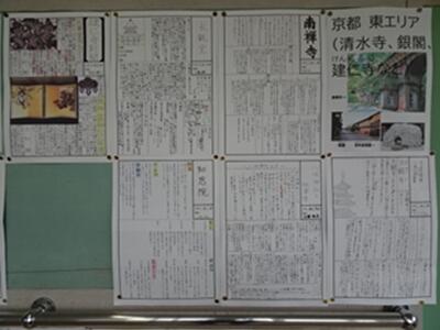 現在、学年フロアの廊下には、それぞれが調べて作成したレポートが掲示されています。